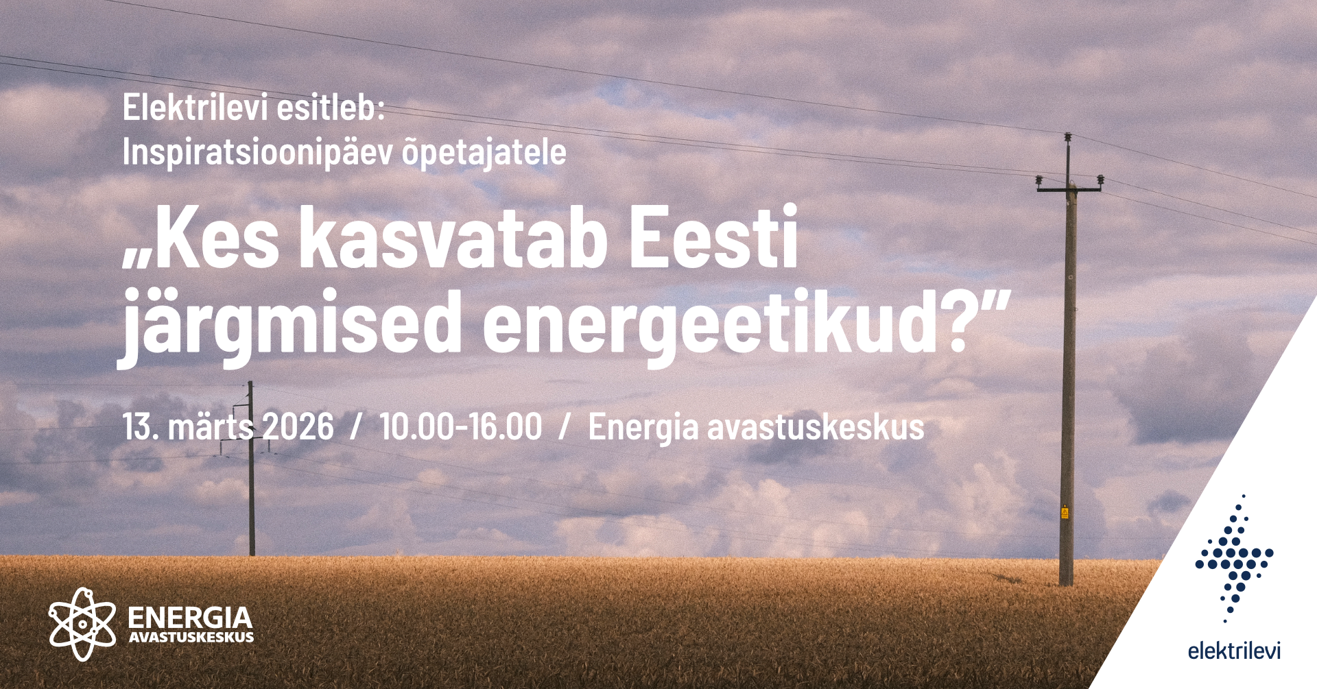 13.03.2026kl 10:00 - 16:00 Elektrilevi esitleb: inspiratsioonipäev õpetajatele „Kes kasvatab Eesti järgmised energeetikud?“