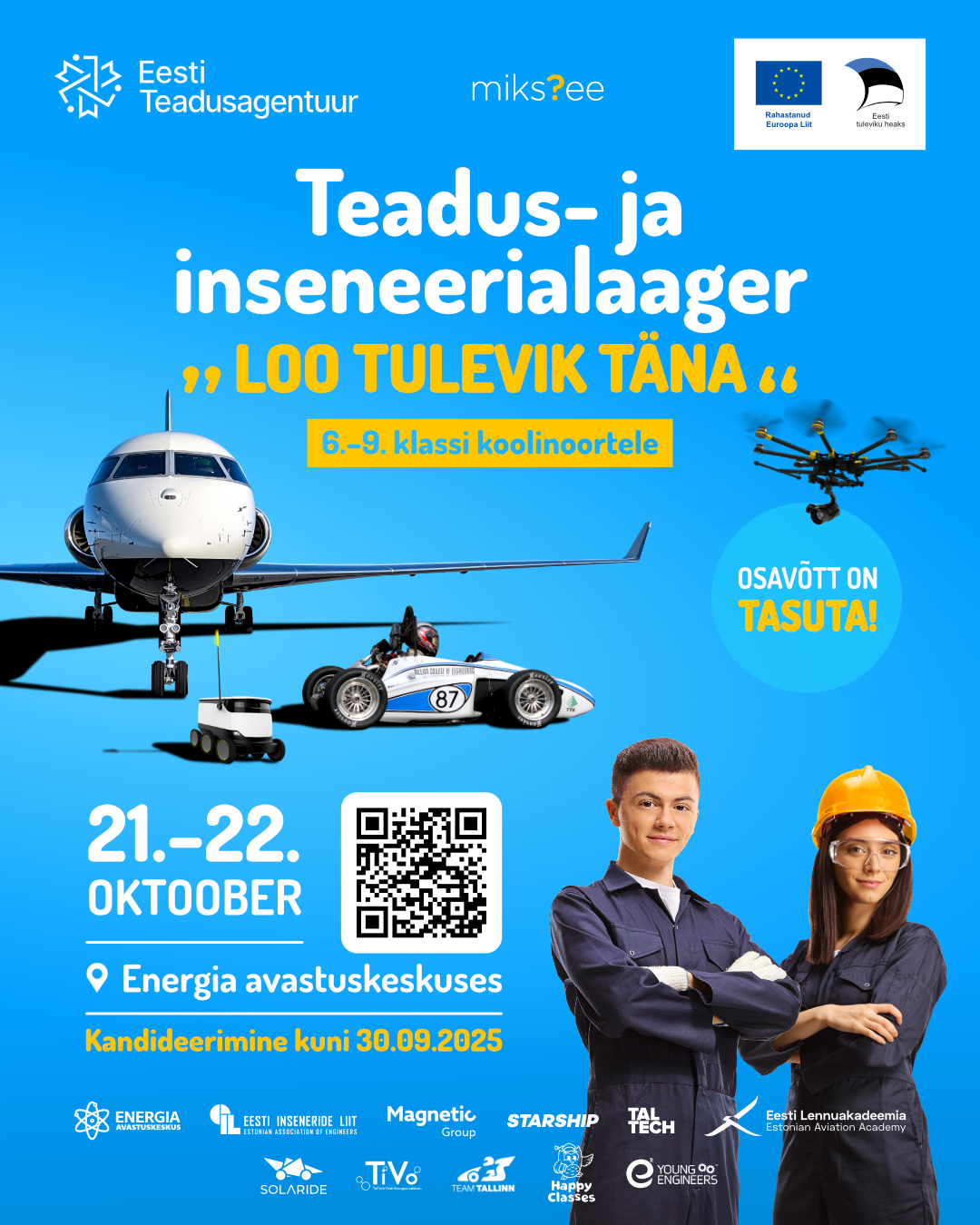 Наука + инженерия = приключение! Подай заявку на участие в лагере Эстонского научного агентства «Создавай будущее сегодня».